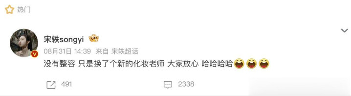 8月31日凌晨,宋轶在微博甩出一张高清素颜照,配文只有九个字: