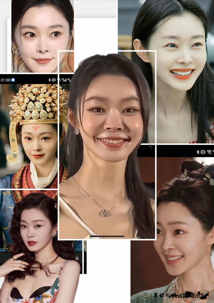 鞠婧祎就更不用说了,从出道时的方脸、单眼皮、塌鼻梁,到现在的瓜子脸、大眼睛、高鼻梁,简直像换了一个人。粉丝总说是 “长开了、瘦了、化妆技术提升了”,可她的脸每隔一阵就有新变化,网友都调侃她 “每年都换模板”。