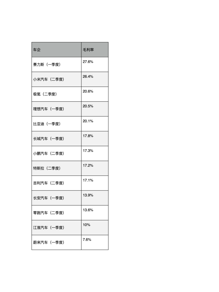 其中,小米汽车二季度毛利率已经超过特斯拉,在已经公布二季度毛利率的车企中位于首位。若把时间跨度扩大到今年第一季度,小米汽车毛利率仅次于赛力斯(27.6%),位于统计车企的第二位。