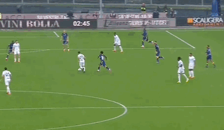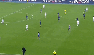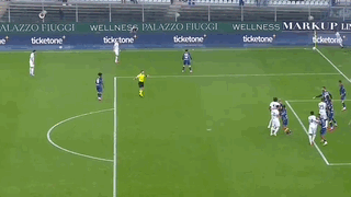 第7分钟,恰尔汗奥卢挑传,劳塔罗吊射,内尔松舍身门线解围。
