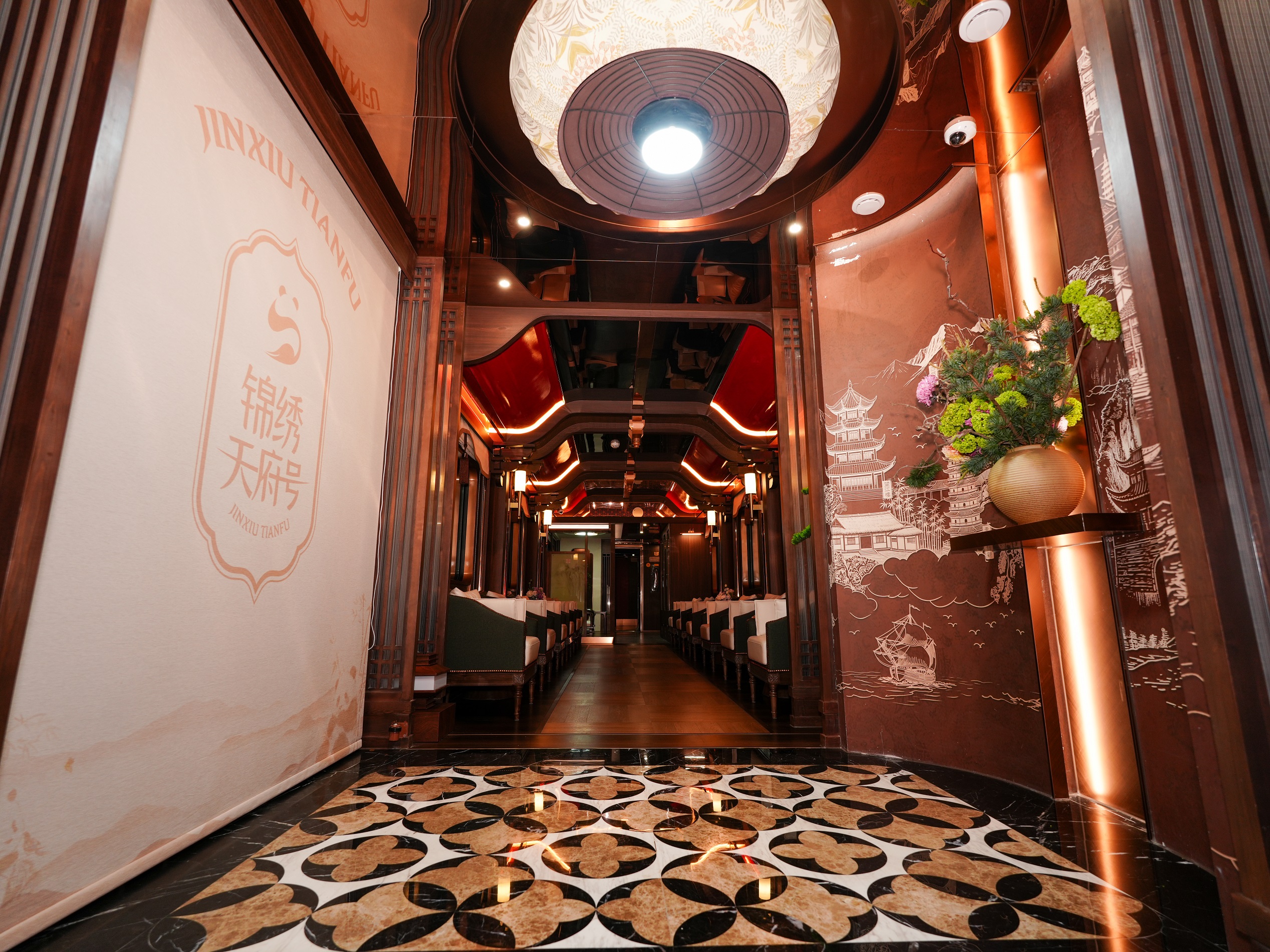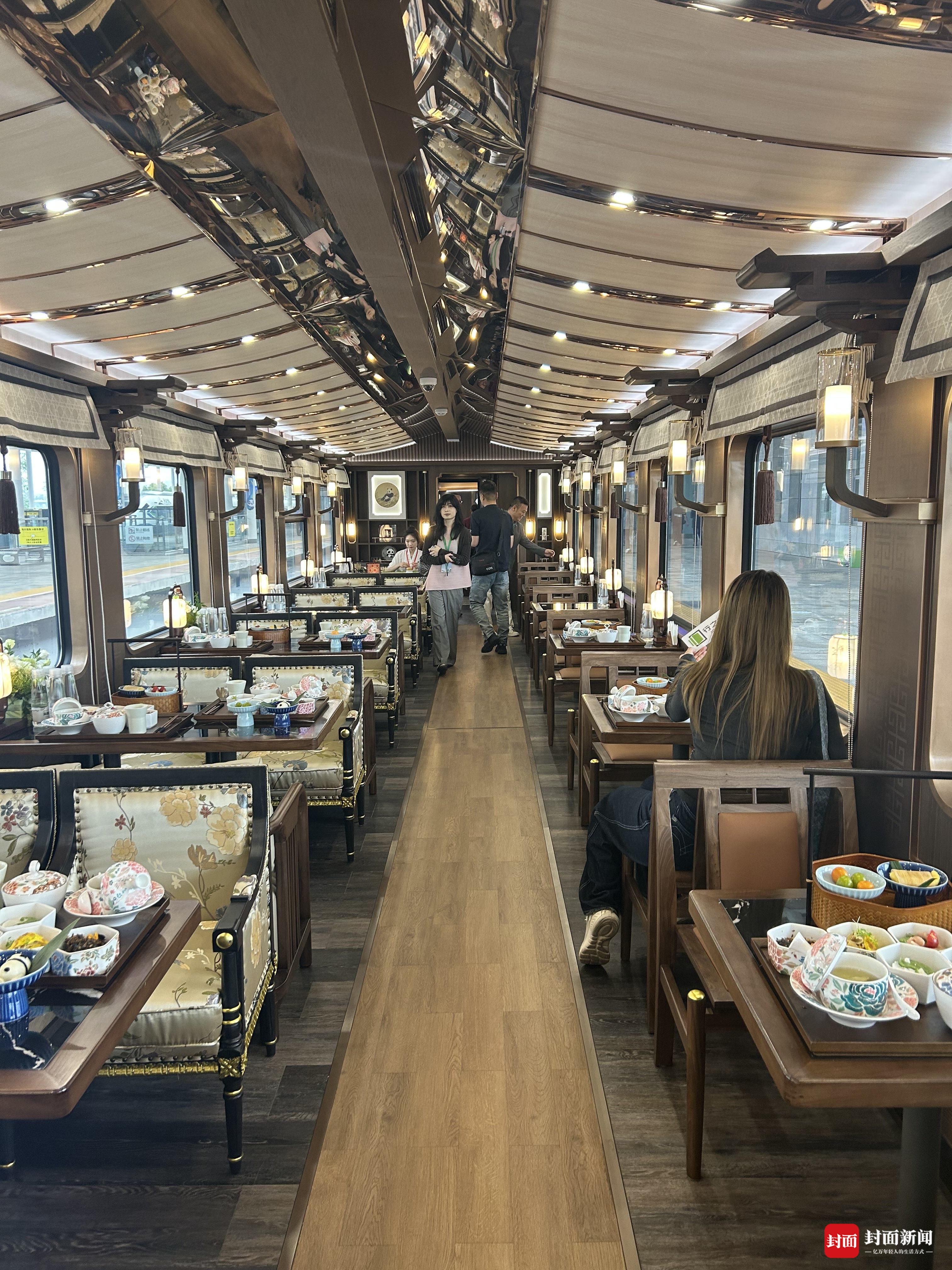 与其他旅游专列不同,“锦绣天府号”不仅配置豪华,还是个“文艺青年”。全车以中式“蜀锦宋韵”为设计主题,融合熊猫元素与宋代美学,诠释“蜀锦”与“安逸”。