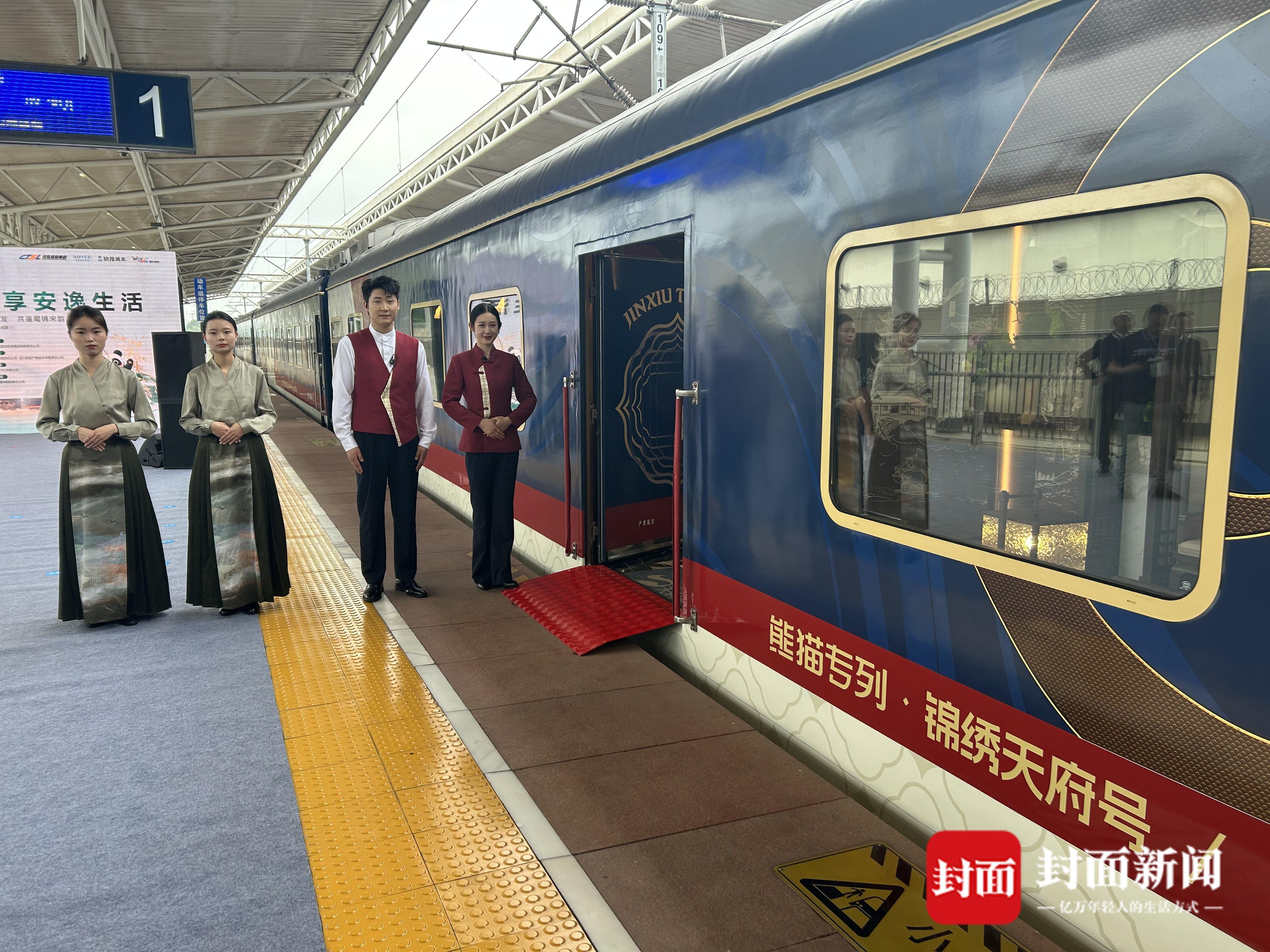 据悉,该专列全年将开行20趟,产品预售率达到80%,其中90%为入境游客。“熊猫专列·锦绣天府号”车厢配置有何特色?为何受到入境游客的青睐?27日,封面新闻记者试乘体验。