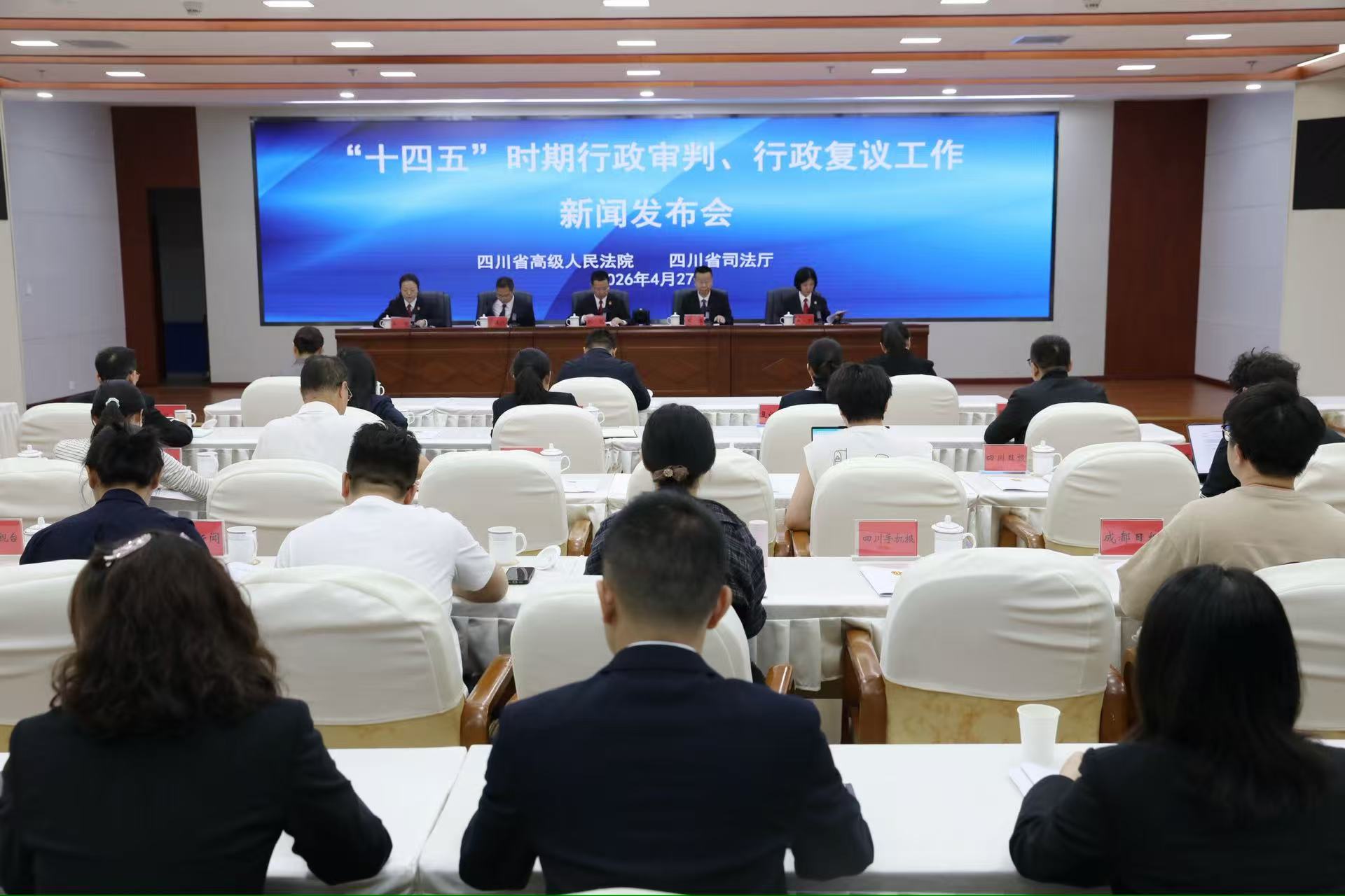 4月27日,四川省高级人民法院联合四川省司法厅举行“十四五”时期行政审判、行政复议工作新闻发布会。会上,省法院通报了“十四五”时期全省法院行政审判工作总体情况。